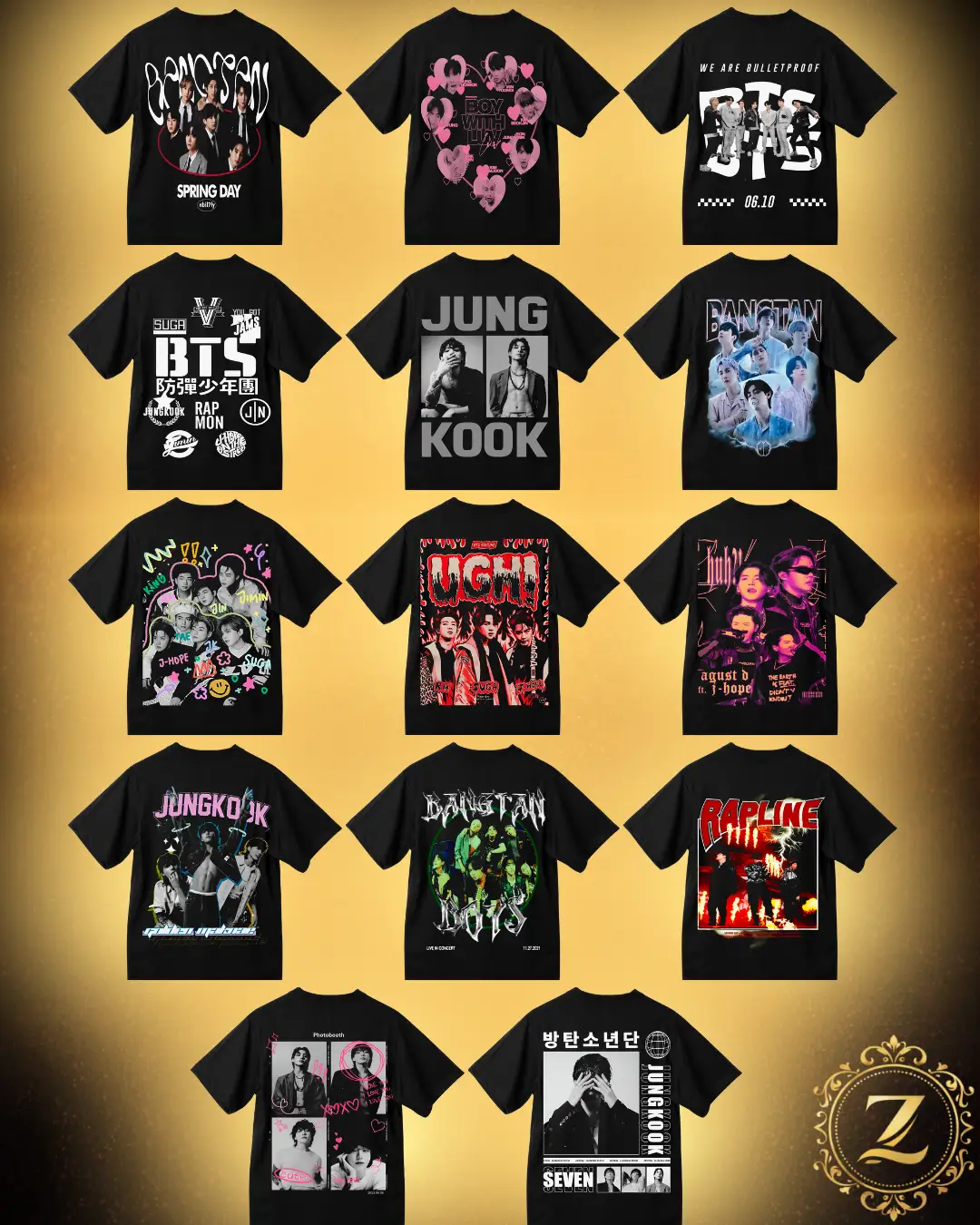 Colección exclusiva de diseños inspirados en BTS, lista para imprimir y vender. Incluye archivos PNG en alta calidad, con fondo transparente, perfectos para playeras, hoodies, tote bags y más. Ideal para emprendedores que quieren ahorrar tiempo, verse más profesionales y tener un catálogo vendible todo el año.